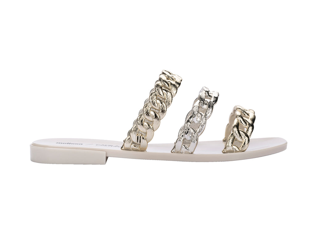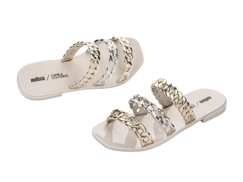 YAY! Now you can have an amazing Melissa sandal made in partnership with Camila Coutinho, a famous digital influencer and fashion designer and creator of the blog Garotas Estúpidas, one of the first and most influential fashion blogs out there. Feel is a flat sandal, which can also be used as a flip-flop, stylish and delicate, ideal for everyday use. It has a thin sole with a small heel and three straps that form its upper, all made in a shape that resembles chains. Available in several amazing colors for you to enjoy: brown, white, beige and black.